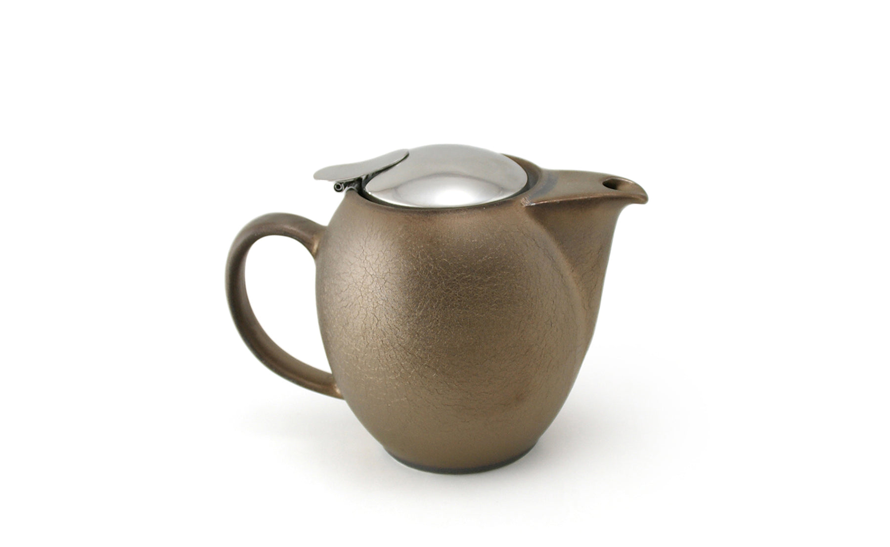 This small ceramic teapot with golden highlights will accompany you at home, at the office or on a trip.